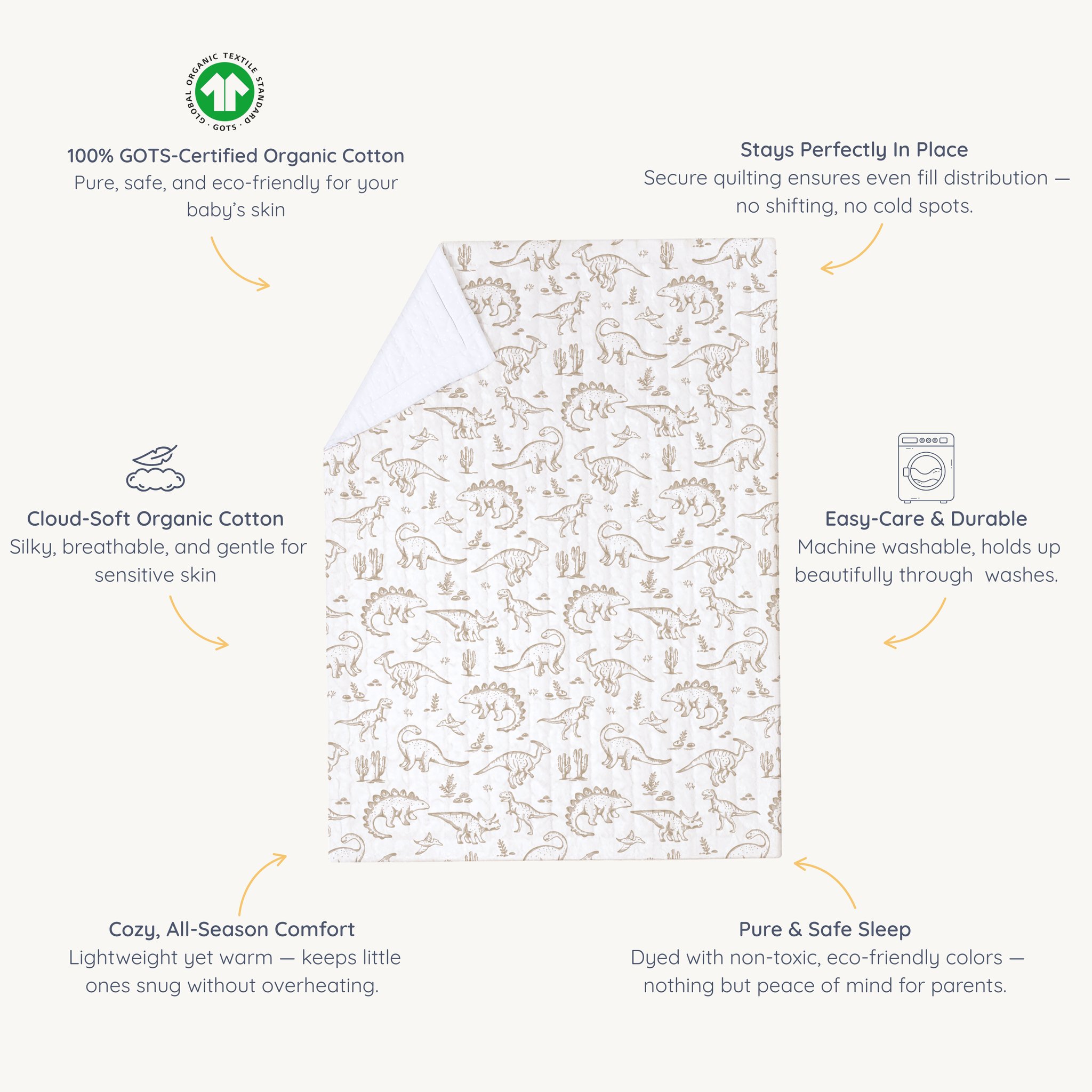 Bring the ultimate in comfort and style to your child's bedding with our reversible baby and toddler comforter! Made from the softest organic cotton, this comforter offers a cozy and snuggly sleeping experience for your little one. Featuring a charming design on one side and a plush texture on the other, this comforter is perfect for all seasons and moods. The natural and chemical-free organic cotton ensures that your child's sensitive skin is protected while they rest, giving you peace of mind. With a range of sizes and colors to choose from, you can find the perfect comforter to match your child's unique personality and style.