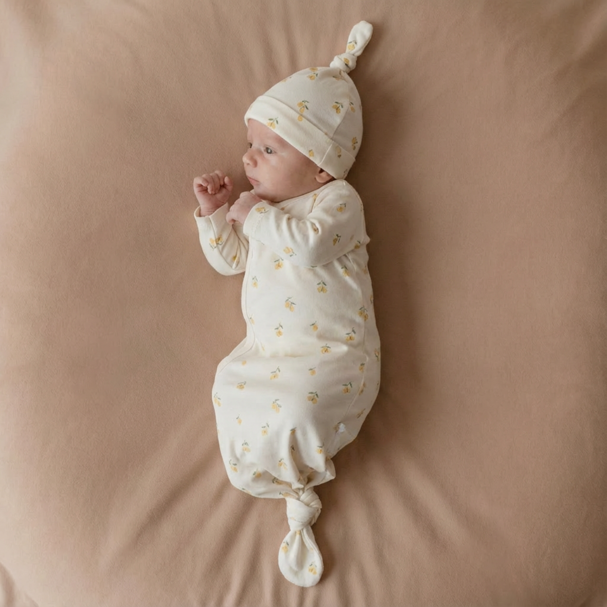 Our Kimono Knotted Sleep Gown in Lemons brings a fresh and cheerful vibe to your baby’s bedtime. Crafted from 100% Organic Cotton, it offers soft, breathable comfort and a gentle fit to keep your little one cozy all night.