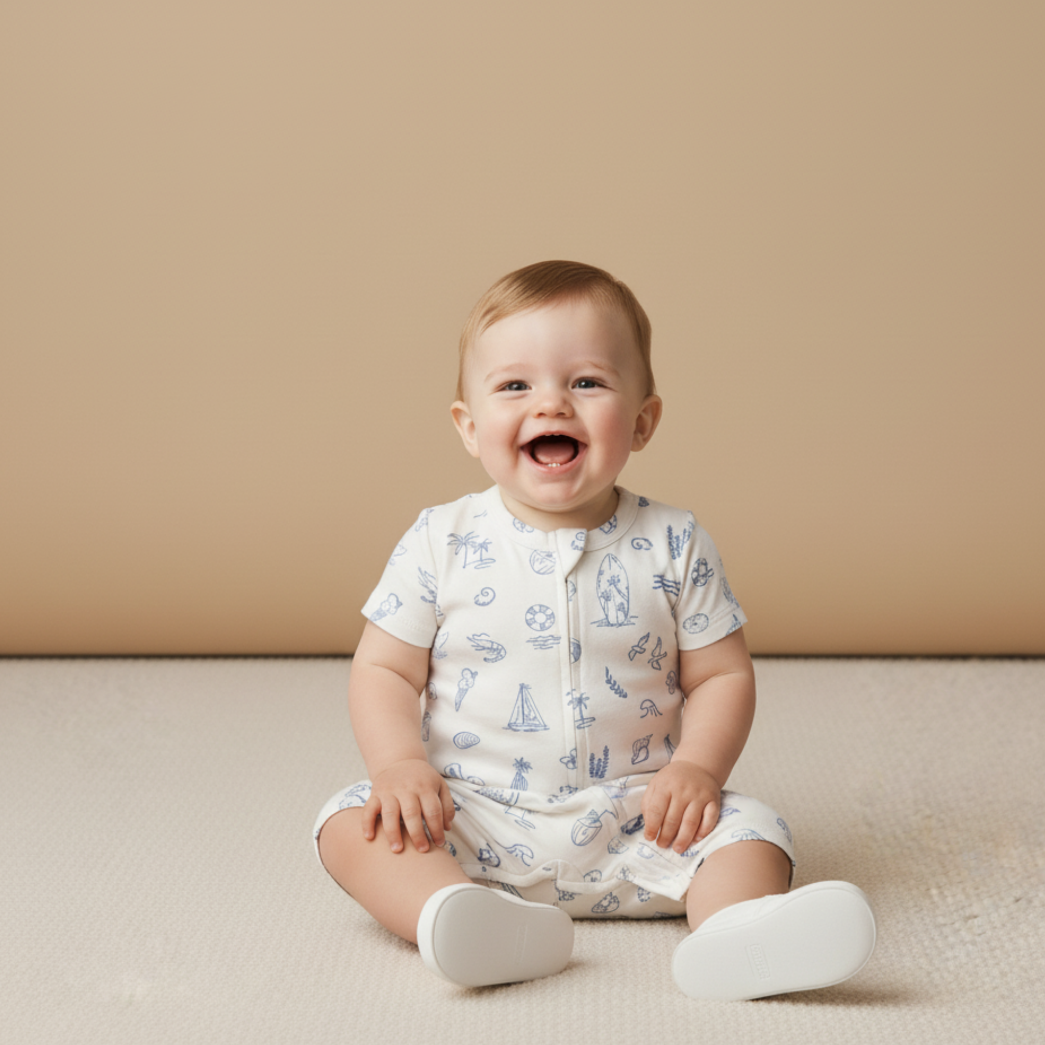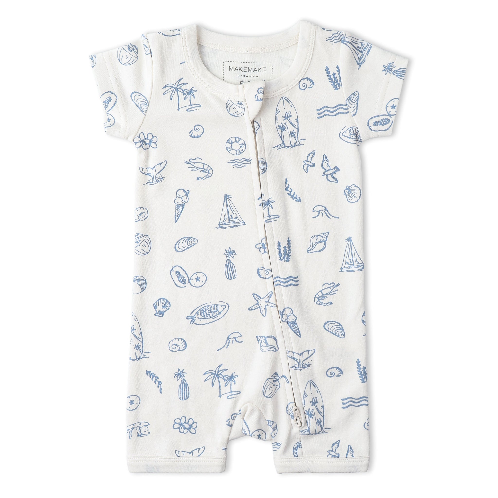 Organic Short Zip Romper - Coastal