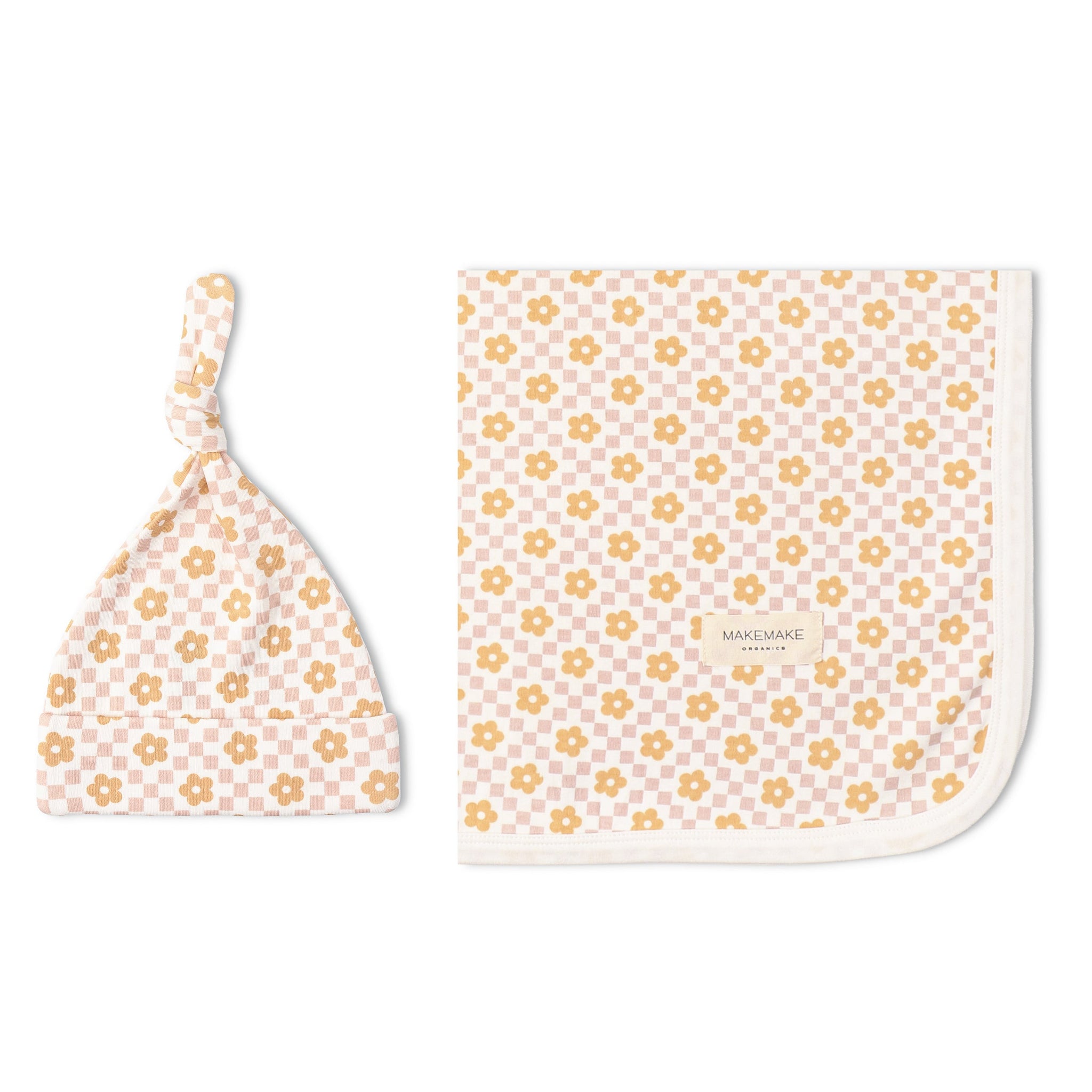Organic Swaddle Blanket & Hat Set - Pop Floral