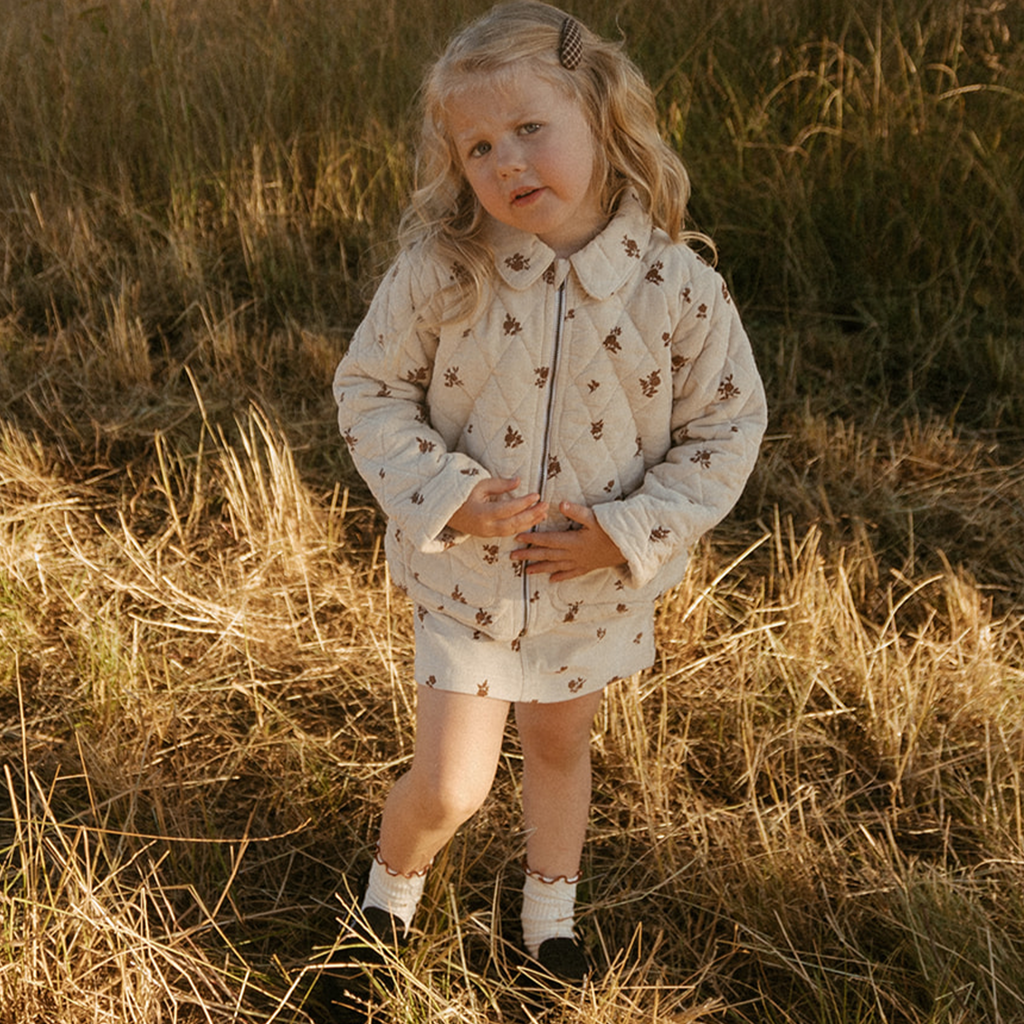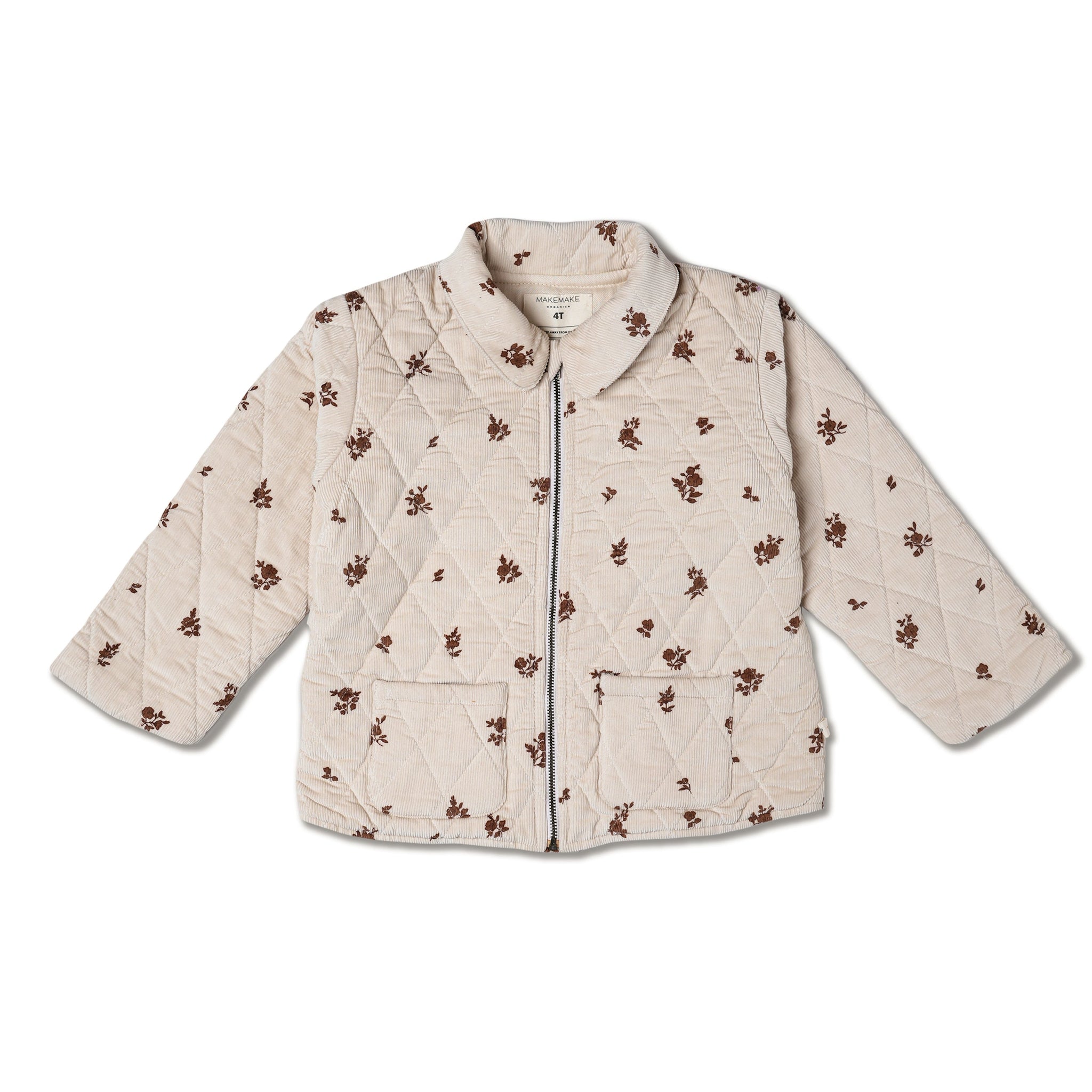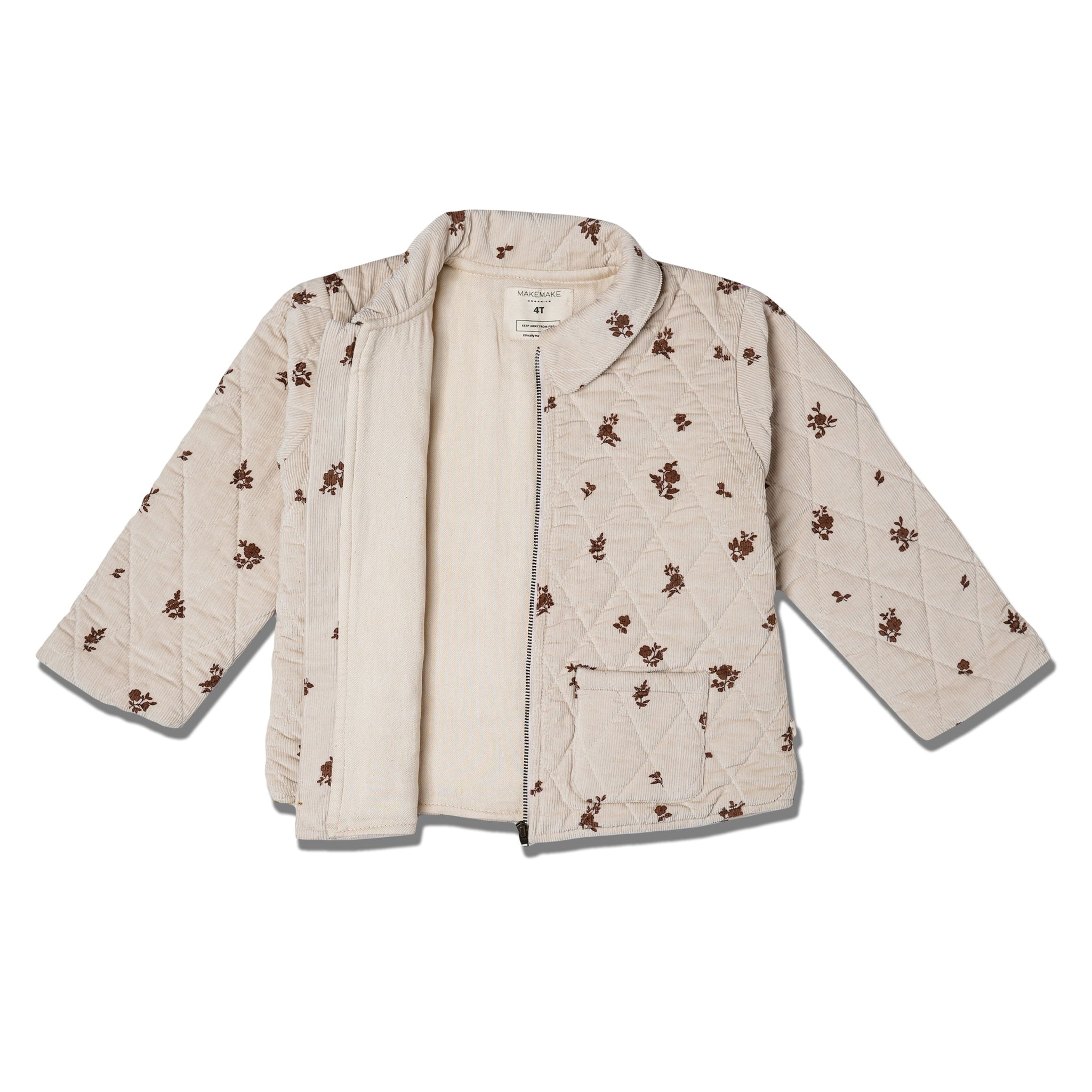 Organic Quilted Corduroy Zipper Jacket - Brown Floral