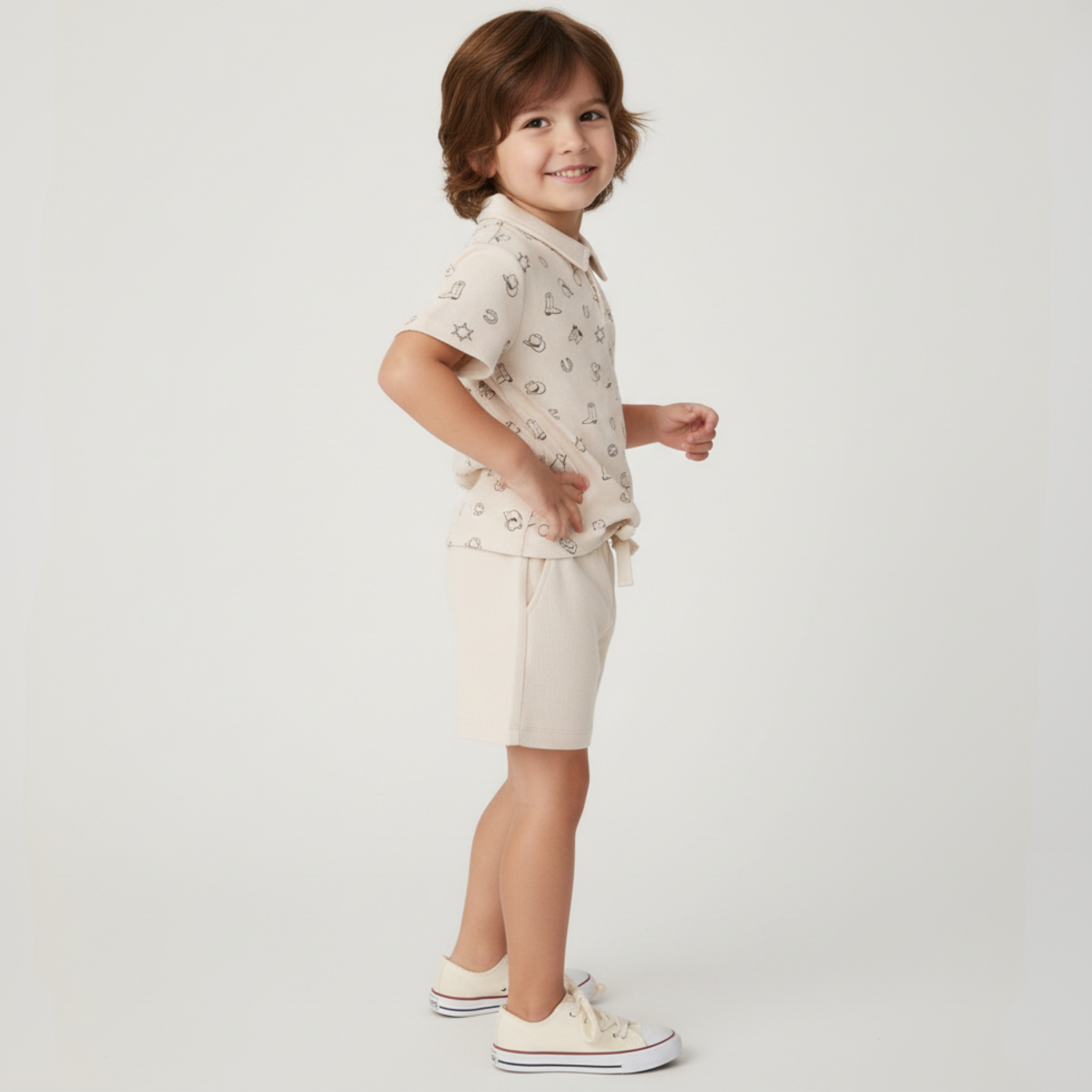 Our Collar Tee and Shorts Set in the Rodeo print is a perfect pick for sunny day adventures. Crafted from ultra-soft organic cotton interlock, this comfy set keeps your little one cool, cozy, and ready for playtime.