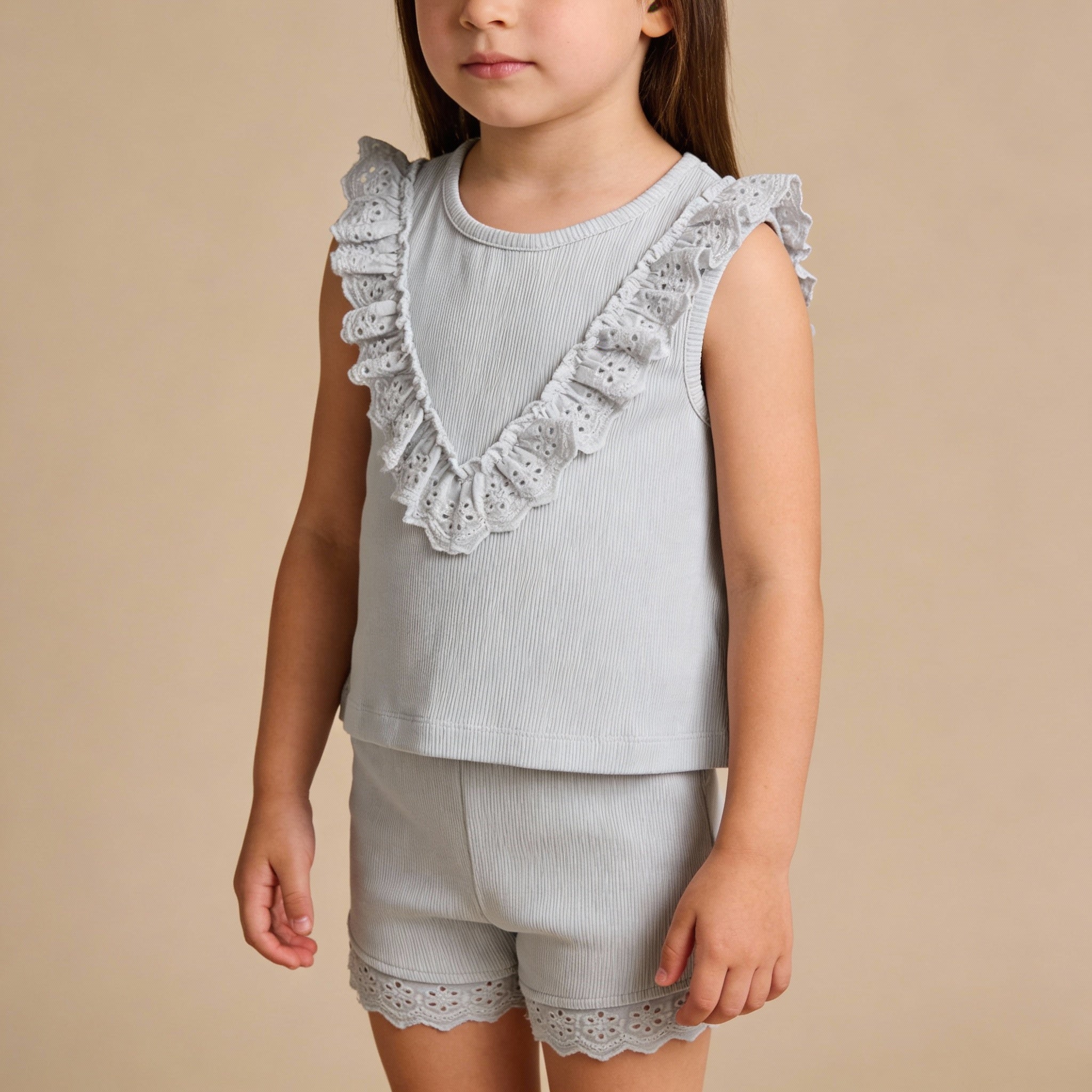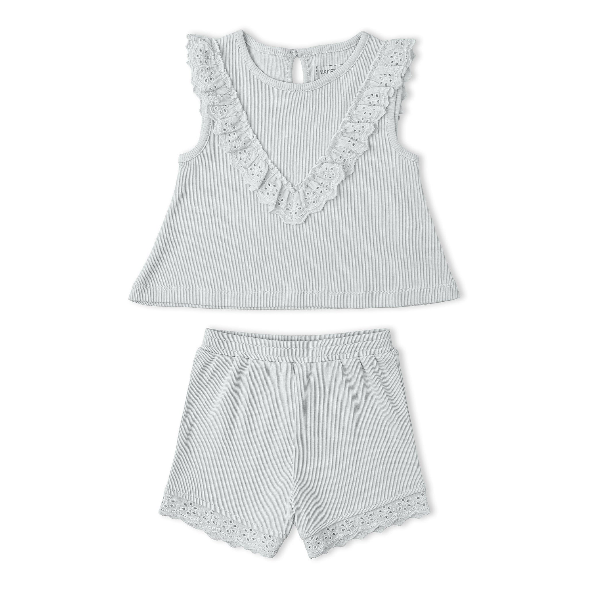 Organic Ruffle Top & Shorts Set - Fog