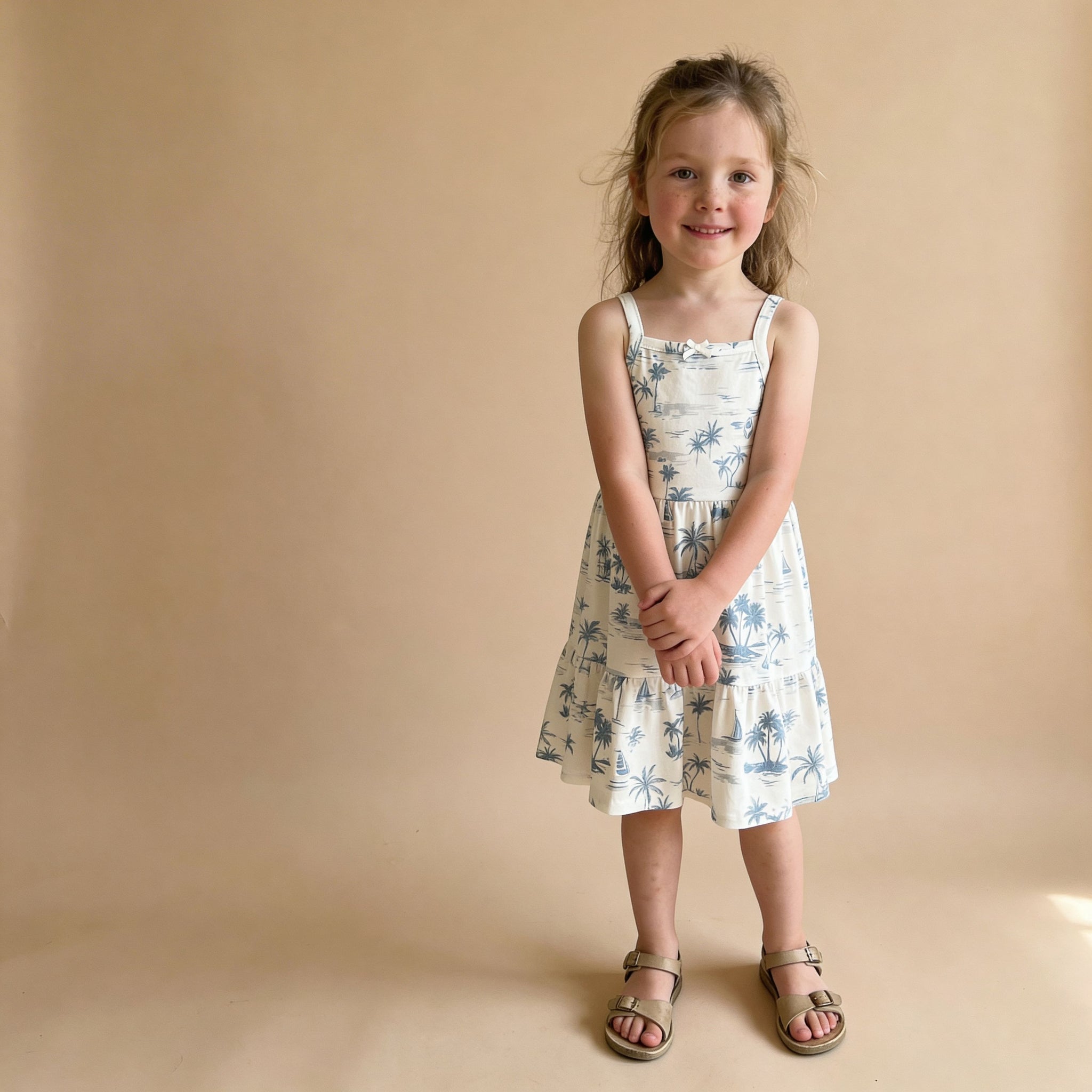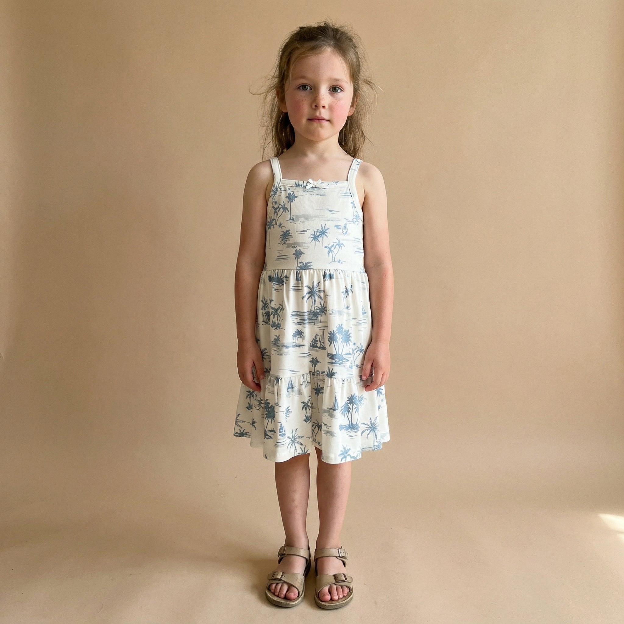 Organic Strap Tiered Dress - Coastal