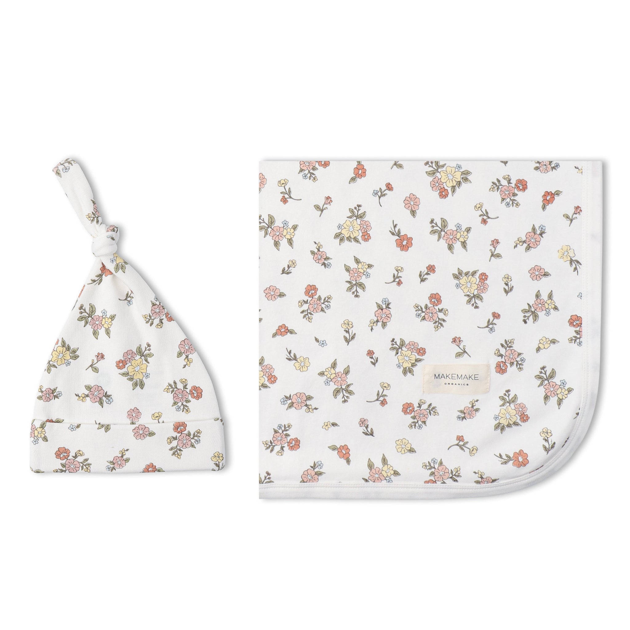 Organic Swaddle Blanket & Hat Set - Meadow