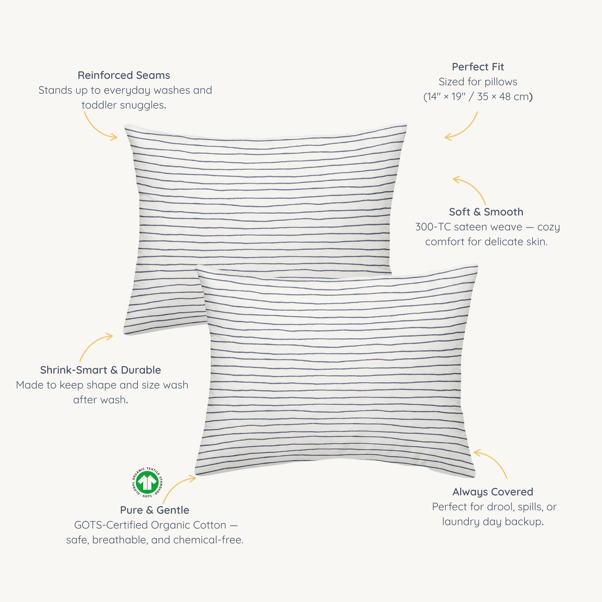 Organic Cotton Toddler Pillowcase - Navy Blue Stripes