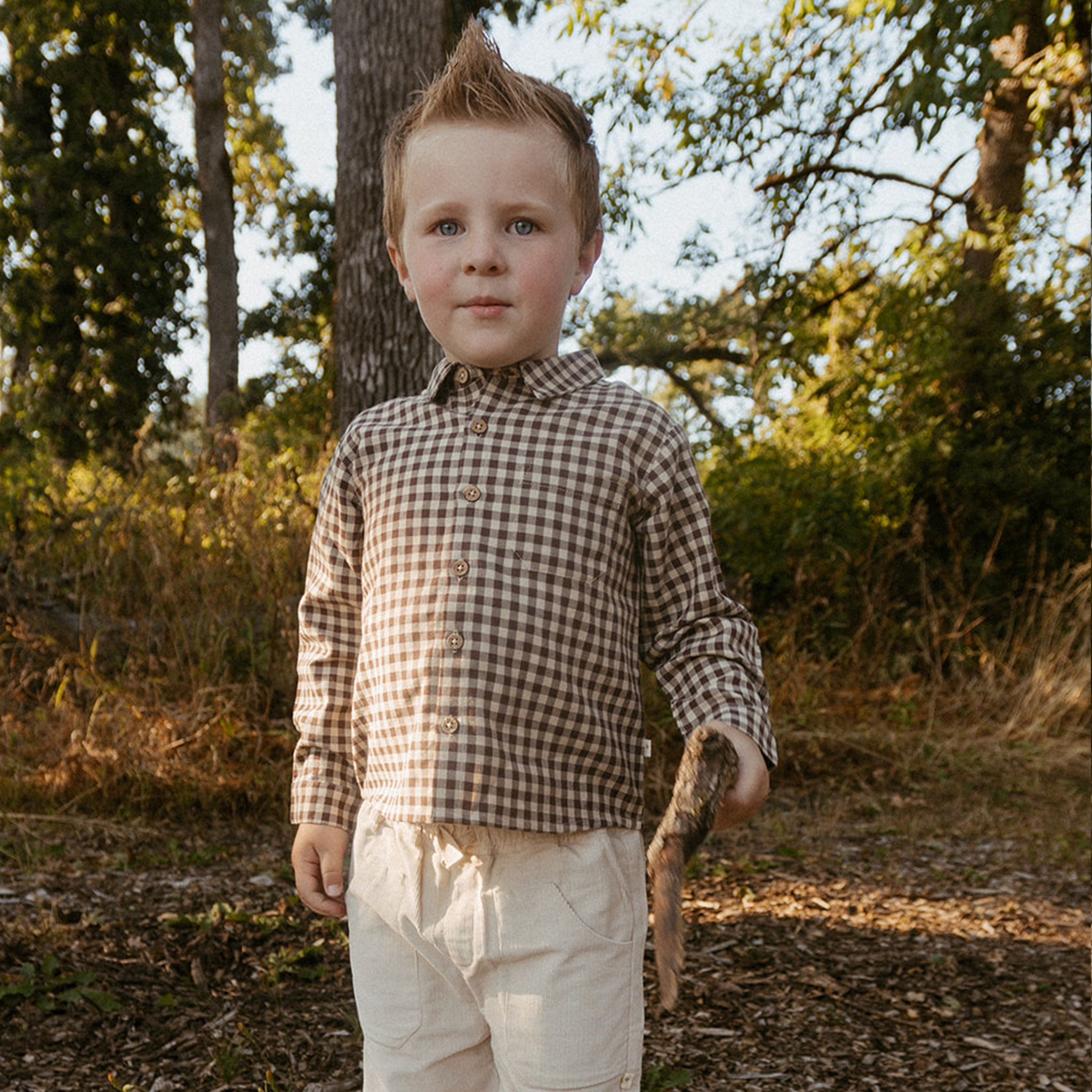 Organic Collared Long Sleeve Shirt - Gingham Checks